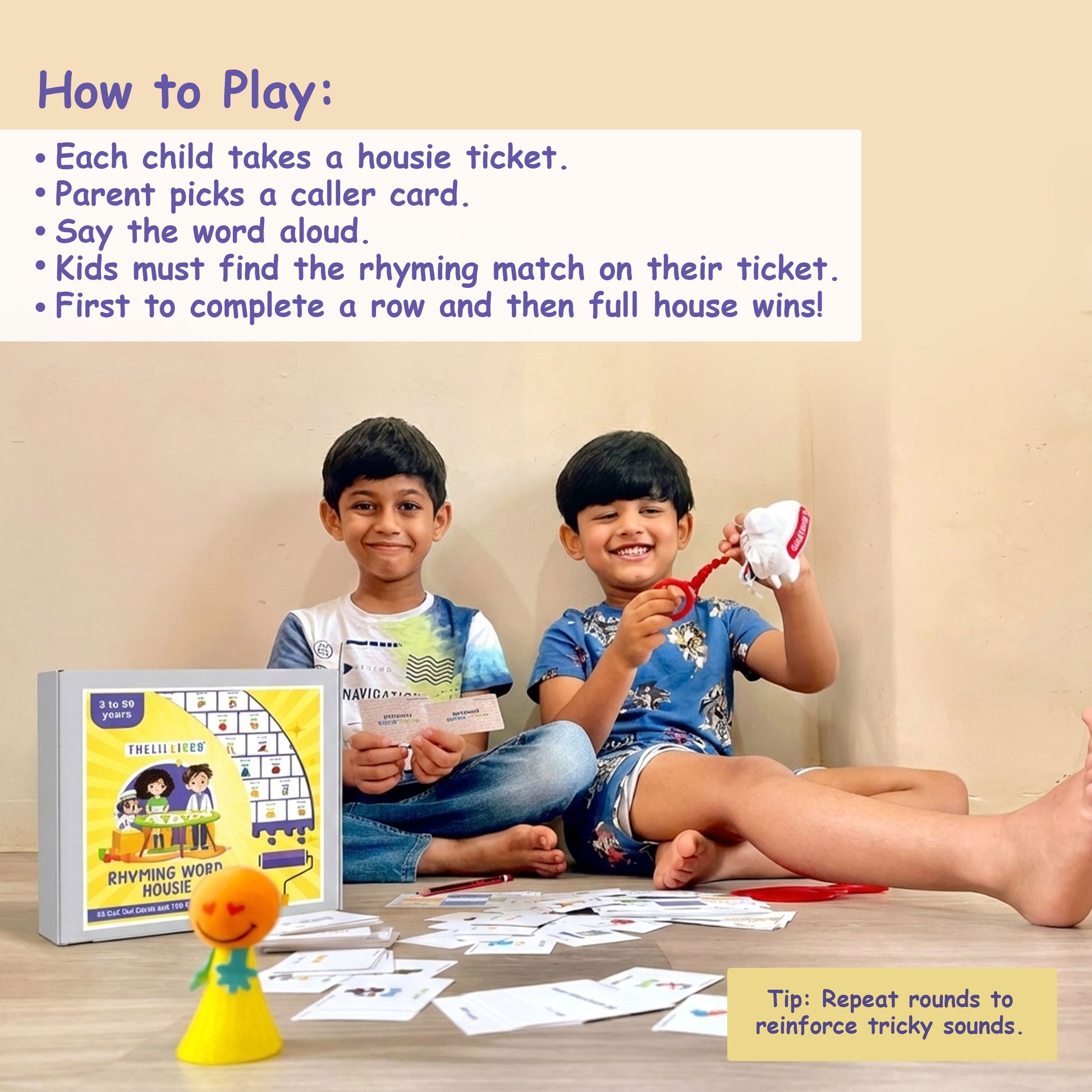 A fast, fun housie game that makes rhyming and early phonics unforgettable.